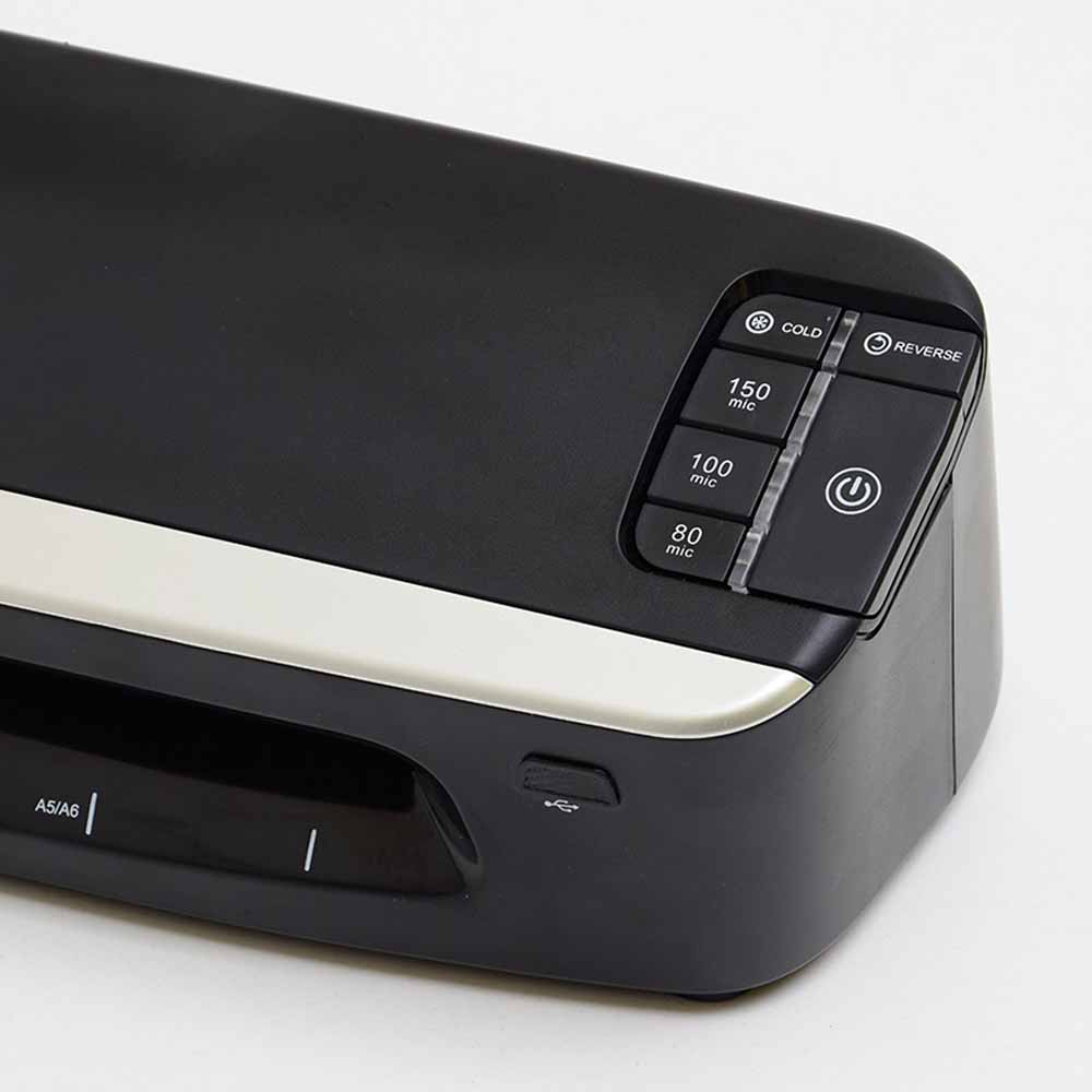 Laminator wyposażony jest w funkcję cofania, która pozwala na wycofanie źle włożonej folii, oraz diodę sygnalizującą osiągnięcie temperatury roboczej. Szerokość laminacji wynosząca 320 mm (A3) sprawia, że urządzenie jest idealne do laminowania dokumentów różnego formatu. Dodatkowo, półka na zalaminowane dokumenty zapewnia porządek podczas pracy.