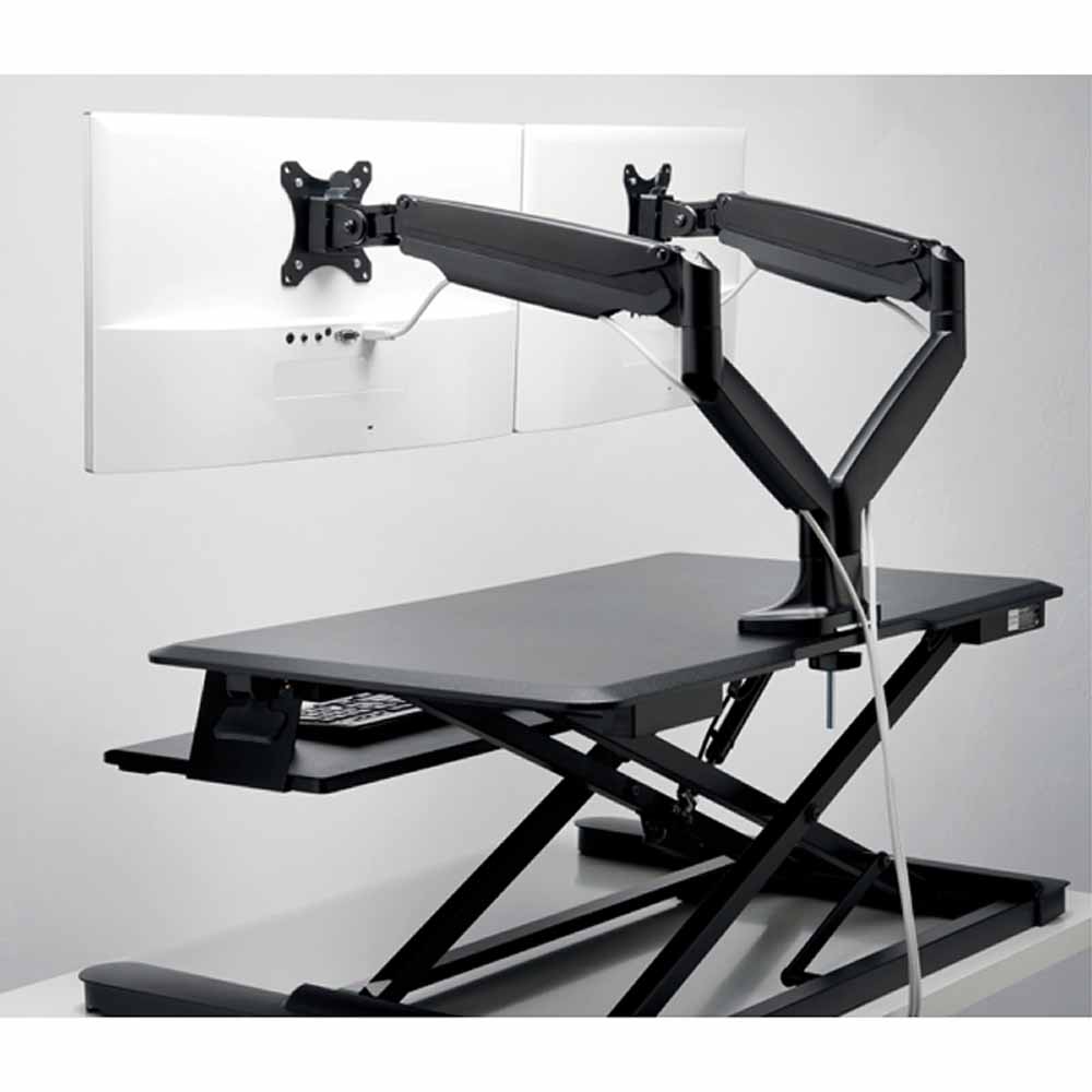- wbudowana sprężyna gazowa i regulacja naciągu przeciwwagi umożliwiają bezwysiłkowe i bezproblemowe ustawienie wysokości, odległości i kąta nachylenia monitora
