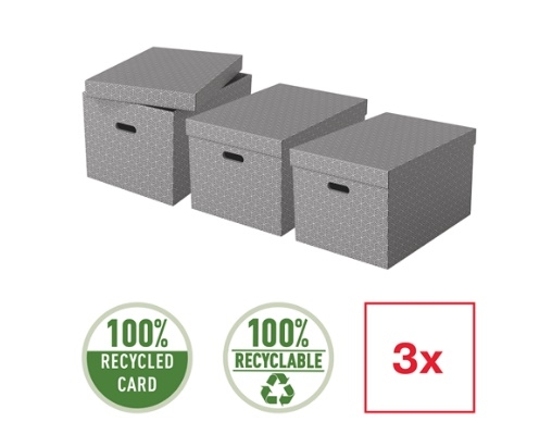 Zestaw trzech dużych tekturowych pudełek do przechowywania ze stylowym i nowoczesnym geometrycznym wzorem na powierzchni