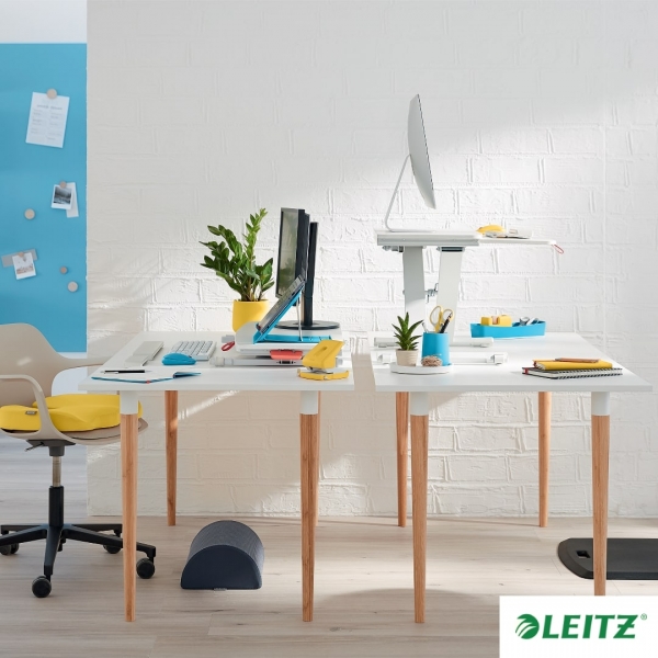 Kolekcja Leitz Ergo Cosy łączy stylowe wzornictwo z najwyższą jakością wykonania, umożliwiając stworzenie zdrowego i skłaniającego do aktywności ruchowej środowiska pracy