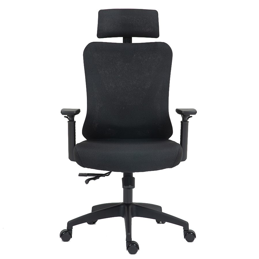 wygodny, kompaktowy fotel biurowy pokryty tkaniną membranową miękkie, wypełnione pianką siedzisko i oparcie mechanizm motylkowy (TILT) dający możliwość swobodnego kołysania oraz blokady pozycji do pracy stałe podparcie lędźwiowego odcinka kręgosłupa podłokietniki z tworzywa zapewniająca stabilność pięcioramienna, podstawa podnośnik gazowy (siłownik): 100 mm kółka nylonowe, twarde, do wszystkich typów podłóg - średnica 50 mm materiał: tkanina poliestrowa wysokość krzesła: 106,5 - 118,5 cm regulacja wysokości siedziska w zakresie: 43,5 – 55,5 cm szerokość oparcia: 51 cm wysokość oparcia: 67 cm szerokość siedziska: 51,5 cm głębokość siedziska: 47 cm średnica podstawy: 64 cm maksymalne obciążenie: 90 kg rekomendowany czas siedzenia: do 6 godzin dziennie gwarancja: 2 lata kolor: czarny