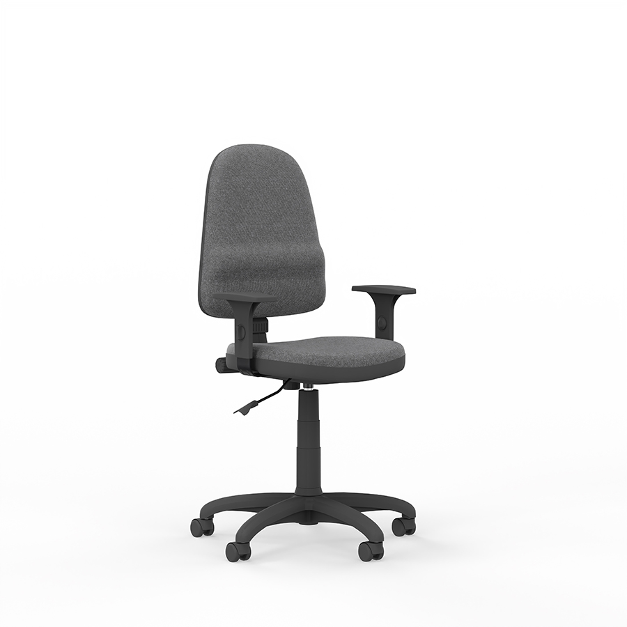 klasyczny, ergonomiczny fotel biurowy doskonale sprawdzi się też w pokoju nastolatka tapicerowane, szerokie siedzisko wykonane jest z pianki wylewanej mechanizm ruchowy CPT regulacja kąta pochylenia oparcia poprzez blokowanie pokrętłem regulacja wysokości oparcia poprzez blokowanie pokrętłem regulacja odległości oparcia od siedziska regulacja wysokości siedziska za pomocą dźwigni blokada w wielu pozycjach korzystanie z mechanizmu tylko w pozycji zablokowanej podłokietniki regulowane góra-dół podstawa czarna, nylonowa Ø 600mm (poliamid + 30% włókno szklane) kółka twarde do powierzchni miękkich (dywanowych) – średnica 50 mm posiada atest badań wytrzymałościowych w zakresie bezpieczeństwa użytkowania materiał: polyolefin wysokość krzesła: 91 - 113 cm regulacja wysokości siedziska w zakresie: 44 - 57 cm szerokość oparcia: 40 cm wysokość oparcia: 52 cm szerokość siedziska: 47 cm głębokość siedziska: 45 cm średnica podstawy: 60 cm maksymalne obciążenie: 150 kg gwarancja: 2 lata kolor: czarny