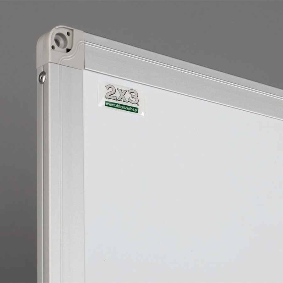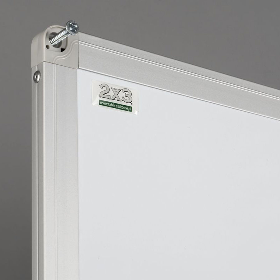 Tablica została wyposażona w ramę z profilu aluminiowego UKF w kolorze srebrnym, elegancko wykończoną popielatymi narożnikami, które dodają jej nowoczesnego charakteru. Tył tablicy został wzmocniony blachą ocynkowaną, co zapewnia stabilność, ochronę przed wilgocią oraz odporność na wygięcia, gwarantując długą żywotność produktu.