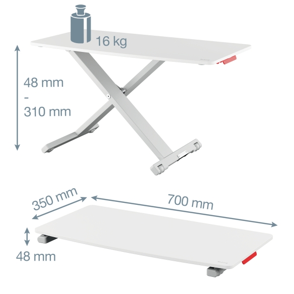 - Wyjątkowo kompaktowa podstawka, o wymiarach 700 x 350 mm, zajmie minimalną przestrzeń na biurku lub w każdym innym miejscu Twojej pracy