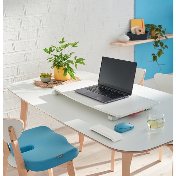 Regulowana podstawka na biurko Leitz Ergo Cosy umożliwia swobodną zmianę pozycji podczas pracy z siedzącej na stojącą, a dzięki jej kompaktowym rozmiarom możesz ją łatwo przenosić, tworząc ergonomiczne miejsce pracy w dowolnym miejscu. Dzięki niej możesz stymulować mięśnie do ruchu, poprawić postawę i zwiększyć poziom swojej energii. Jest szybka i łatwa do ustawienia, w jednej chwili umożliwi Ci pracę w innej pozycji, zapewniając jednocześnie pewność i stabilność ustawienia na każdej wysokości. Wspomagana pneumatycznie regulacja umożliwia bezwysiłkowe podniesienie podstawki na idealną wysokość, a ruch w górę i w dół odbywa się tylko w obrębie podstawki, co pozwala na oszczędne gospodarowanie miejscem na biurku. Podstawka na biurko umożliwiająca zmianę pozycji podczas pracy poprawi Twoje zdrowie i samopoczucie oraz stworzy idealne stanowisko do aktywnej pracy. Zaprojektowana jest w minimalistycznym i nowoczesnym wzornictwie. Połącz ją z innymi produktami Leitz Ergo, aby uzyskać przyjazne i elastyczne miejsce pracy, które zapewni Ci swobodę ruchu przez cały dzień.