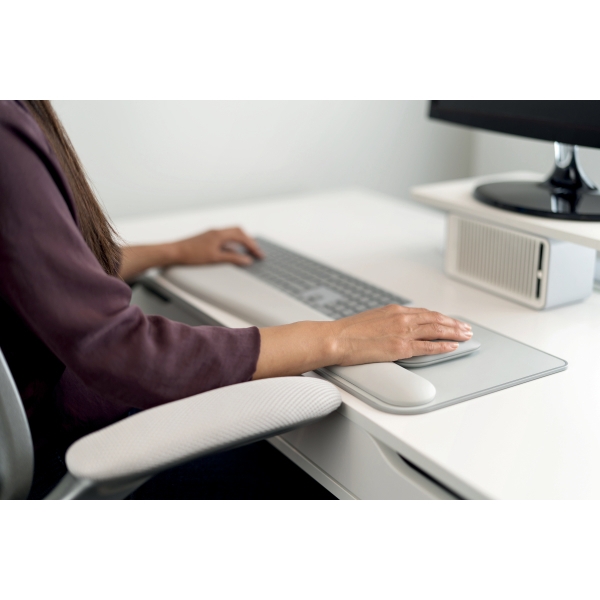 Zapewnij sobie całodzienny komfort pracy dzięki podkładkom pod nadgarstki Kensington ErgoSoft™. Zaprojektowane z uwzględnieniem zasad ergonomii, tak aby pasowały do dzisiejszych cieńszych urządzeń i ich estetyki, poprawią Twoje samopoczucie oraz wydajność. Powłoka zewnętrzna została wykonana z najwyższej jakości sztucznej skóry, a wnętrze jest wzmocnione wypełnieniem żelowym. Podkładki pod nadgarstki ErgoSoft dostępne są w różnych opcjach, dopasowanych pod względem wysokości do klawiatur mechanicznych, gamingowych, płaskich i standardowych oraz do różnych rozmiarów myszy. Idealnie sprawdzą się we współczesnych, nowocześnie wyposażonych miejscach pracy i biurach.