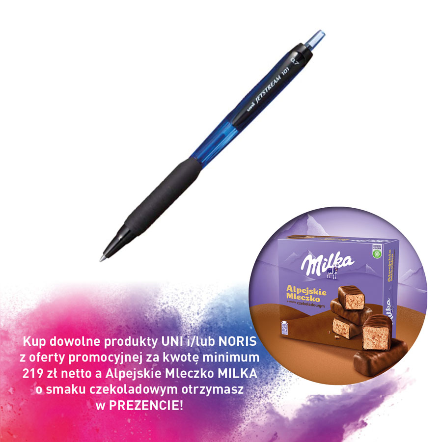 jm.: szt Kup dowolne produkty UNI i/lub NORIS z oferty promocyjnej za kwotę minimum 219 zł netto a Alpejskie Mleczko MILKA o smaku czekoladowym otrzymasz w PREZENCIE!