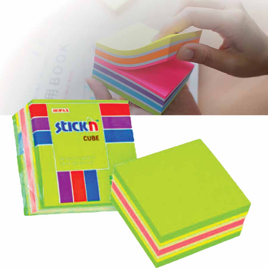 - krawędź bloczka sklejona jest w sposób umożliwiający wyjmowanie karteczek w dowolnym kolorze bez konieczności rozrywania go