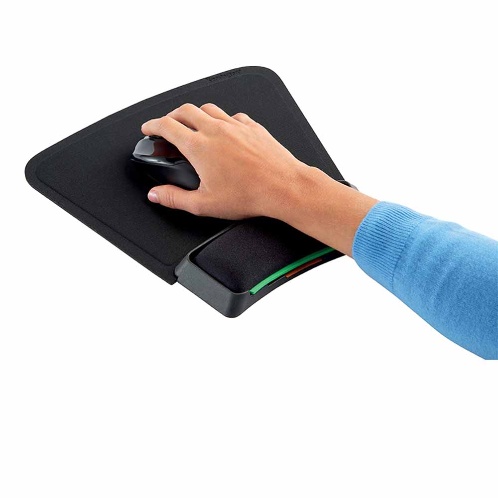 - regulacja wysokości - dzięki kolorystycznym wkładkom określającym pozycję osobistego komfortu - pomaga ułożyć nadgarstek podczas posługiwania się myszą pod odpowiednim kątem
