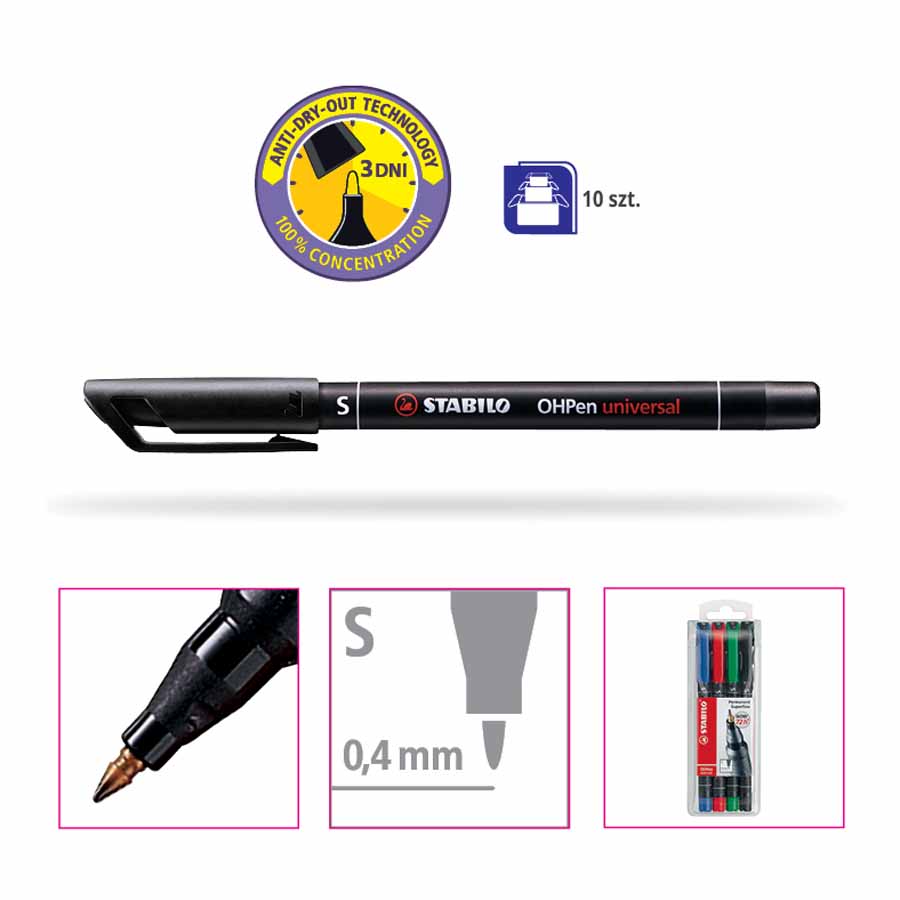 Grubość linii pisania wynosząca 1,0 mm zapewnia wyraźne i czytelne oznaczenia, idealne do ogólnych notatek i rysunków. Dzięki temu foliopis świetnie nadaje się do wielu różnych zadań, gdzie wymagana jest wyrazistość i trwałość.