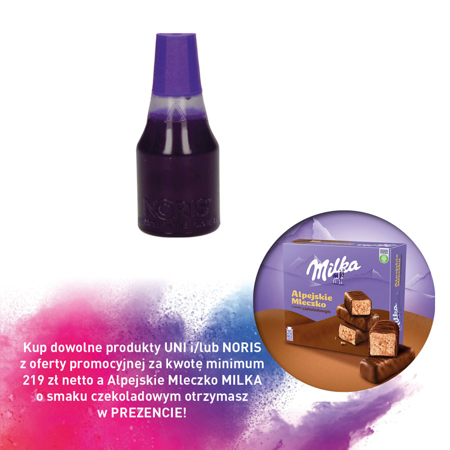 jm.: szt Kup dowolne produkty UNI i/lub NORIS z oferty promocyjnej za kwotę minimum 219 zł netto a Alpejskie Mleczko MILKA o smaku czekoladowym otrzymasz w PREZENCIE!
