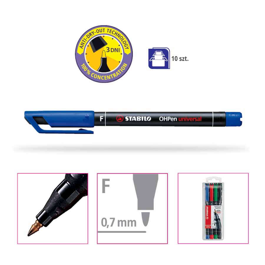 Niezmywalny tusz foliopisu edding 141 F charakteryzuje się wysoką odpornością na światło i wodę, co zapewnia intensywne i trwałe kolory oraz wyraźne kontury. Idealny do długotrwałych oznaczeń i notatek.