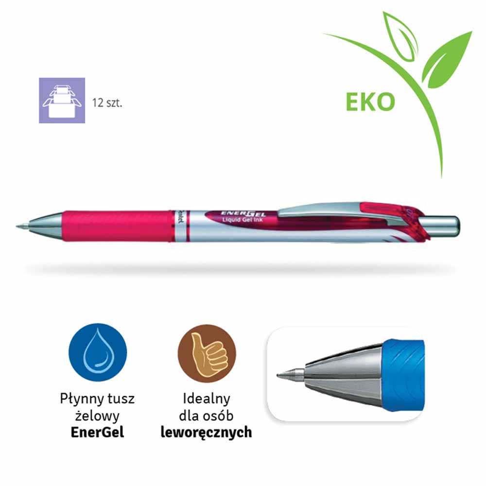 - dzięki technologii płynnego tuszu oraz natychmiastowemu wysychaniu, EnerGel jest idealnym produktem dla osób leworęcznych