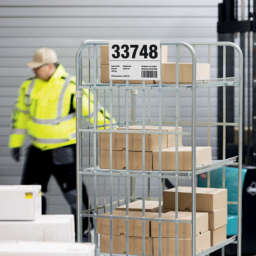 - kieszeń magazynowa wykonana z przezroczystej twardej folii PET z zakładką do zawieszenia na kartonach, pudełkach lub innych pojemnikach