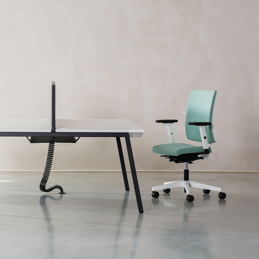 Wyposażone w oparcie z czarnej siatki, krzesło gwarantuje odpowiednią wentylację i wsparcie dla pleców. System Up&Down pozwala na regulację wysokości oparcia, a dodatkowe podparcie lędźwiowe Lu2 dba o prawidłową postawę. Regulowane podłokietniki z miękką nakładką PU zwiększają komfort użytkowania.