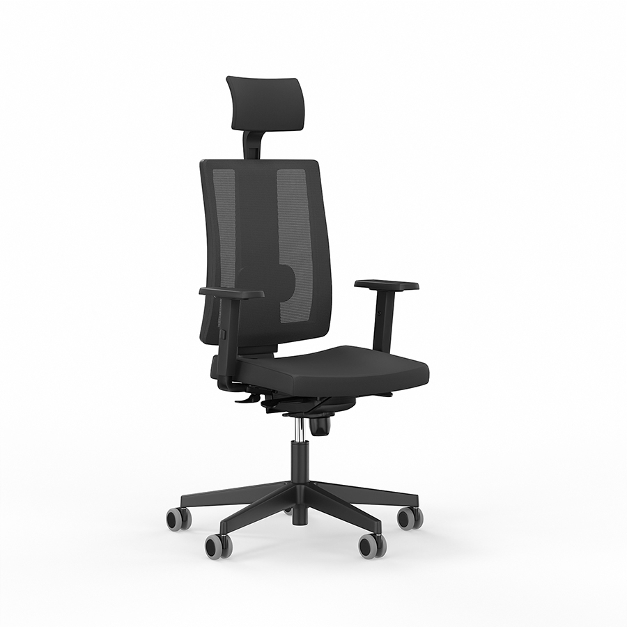 ergonomiczny, obrotowy fotel biurowy z wysokiej jakości siatką na siedzisku, oparciu i zagłówku siedzisko bez wypełnienia pianką zapewnia przepływ powietrza i podnosi komfort podczas wielogodzinnej pracy wygodne podparcie lędźwiowego odcinka kręgosłupa z regulacją wysokości i głębokości mechanizm synchroniczny umożliwia regulację wysokości siedziska i kąta nachylenia oparcia blokada w 5 pozycjach zagłówek z regulacją wysokości i kąta nachylenia podłokietniki 3D z możliwością regulacji wysokości, kąta nachylenia, przesunięcia przód/tył i obrotu prawo/lewo zapewniająca stabilność pięcioramienna, nylonowa podstawa podnośnik gazowy (siłownik) klasy 4: 80 mm kółka nylonowe, twarde, do miękkich powierzchni - średnica 50 mm materiał: 100% poliester, mesh wysokość krzesła: 111 - 121 cm regulacja wysokości siedziska w zakresie: 46 - 53 cm szerokość oparcia (w najszerszym punkcie): 44 cm wysokość robocza oparcia: 58 cm szerokość siedziska (w najszerszym punkcie): 50 cm głębokość siedziska: 48 cm średnica podstawy: 66 cm maksymalne obciążenie: 136 kg kolor: czarny Spełnia regulacje rozporządzenia MRiPS obowiązujące od 17 maja 2024 r. w sprawie BHP na stanowiskach wyposażonych w monitory ekranowe.